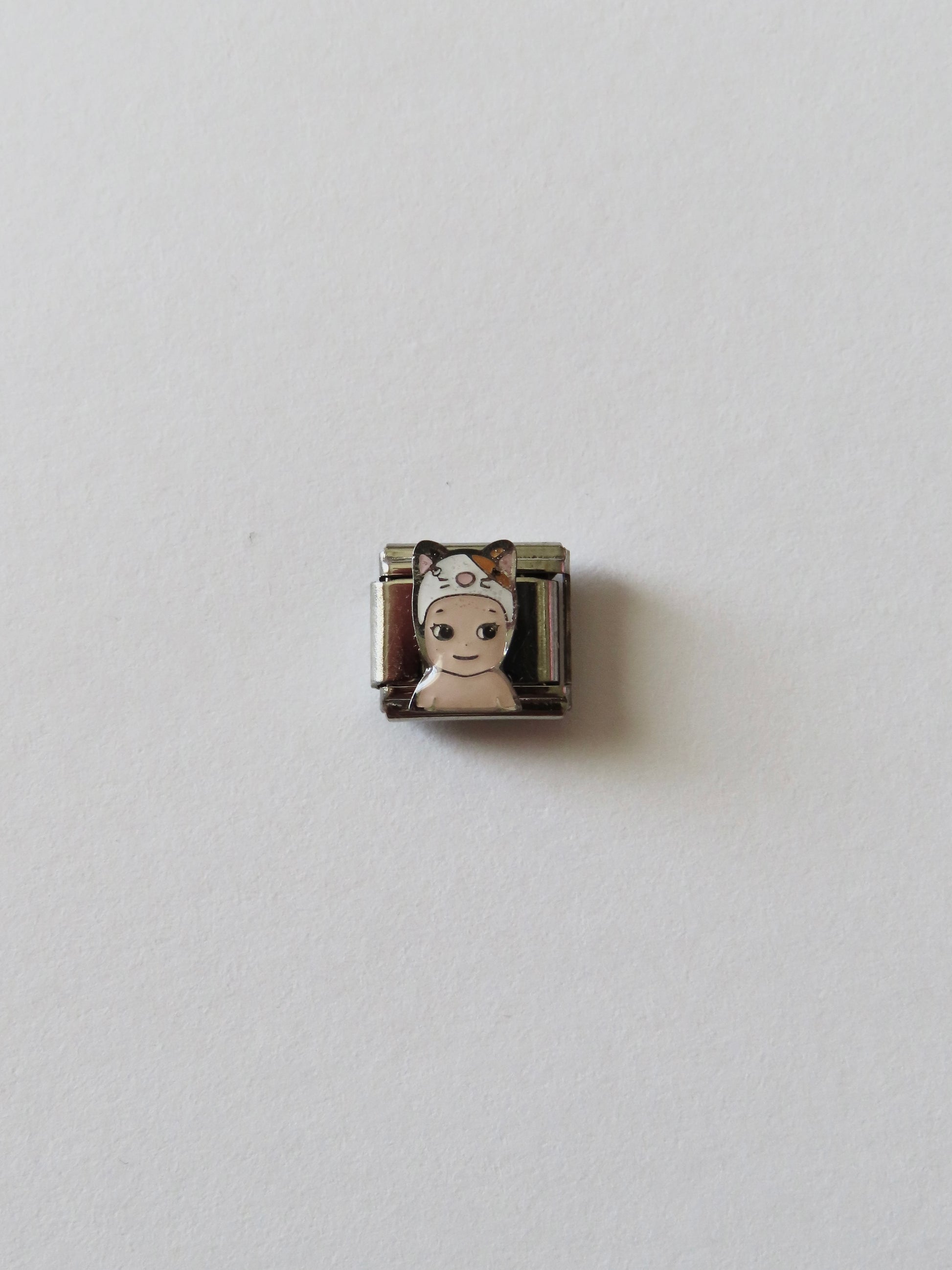 stainless steel Italian charm ⟢ featuring a calico cat sonny angel design