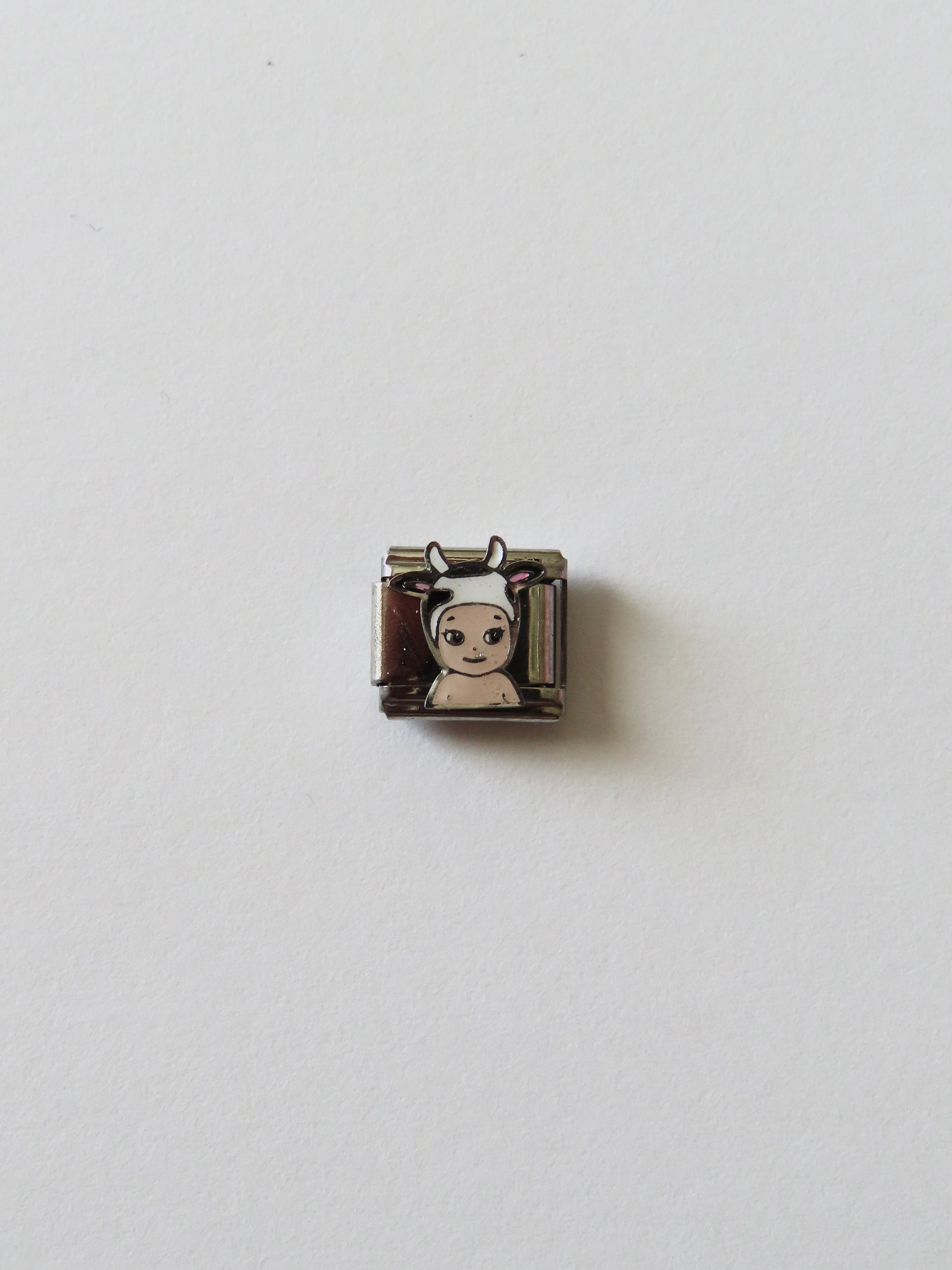 stainless steel Italian charm ⟢ featuring a cow sonny angel design